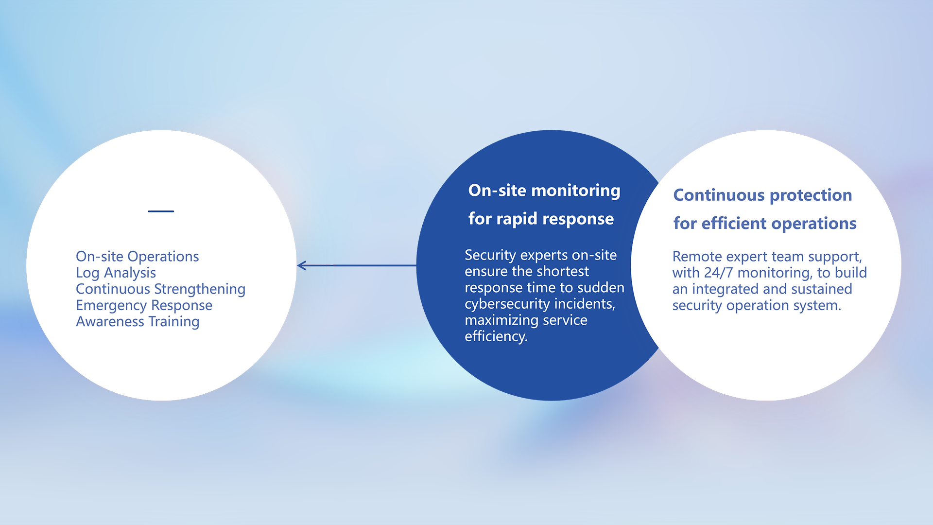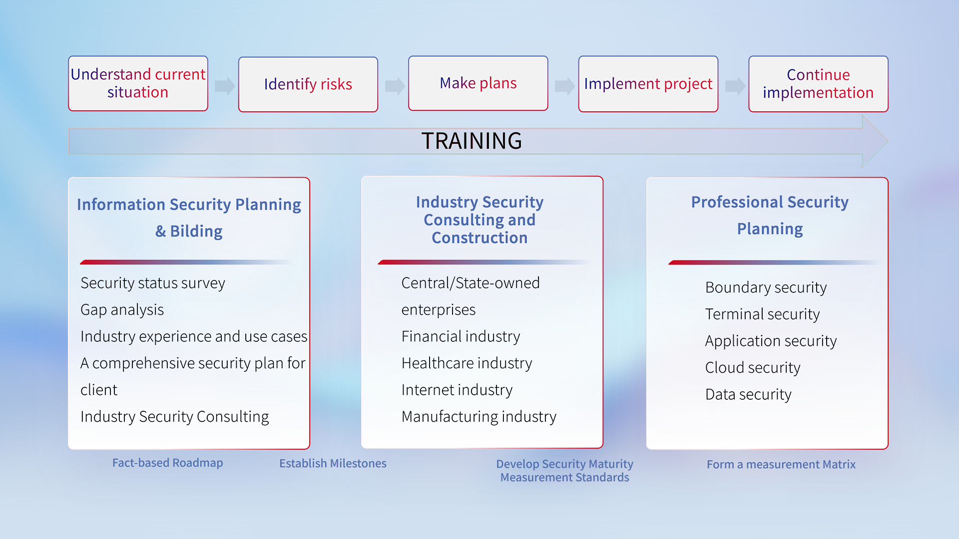 Based on customer industry characteristics, we provide tailored, one-stop security management services, combining professional security expertise with multi-vendor joint solutions. This approach helps customers fully detect and understand cybersecurity threats. Leveraging a service model that encompasses identification, detection, analysis, protection, monitoring, and response, we offer comprehensive support from solution consultation and integrated delivery to assessment, optimization, reinforcement, and ongoing maintenance. With our practical experience, we build robust security systems that enable customers to identify, combat, and manage threats effectively. This continuous effort strengthens security capabilities and ensures ongoing digital protection.