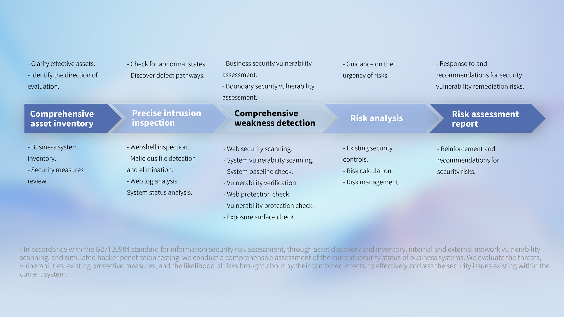 Provide tailored one-stop security management services based on customer industry characteristics, helping customers fully detect and understand cybersecurity threats. Achieve comprehensive risk management with both online and offline protection support from security experts, making security a routine process and establishing a regular security operation and maintenance service for customers.